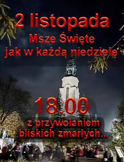 1,2 listopada – kolejność Mszy św. 29 października 2025 Aktualności Opublikowano wAktualności Nawigacja wpisu Poprzedni Poprzedni wpis: Ogłoszenia parafialne – XXX Niedziela Zwykła, 26.10.2025r.Następny Następny wpis: Ogłoszenia parafialne – XXXI Niedziela Zwykła, 2.11.2025 – Dzień Zaduszny